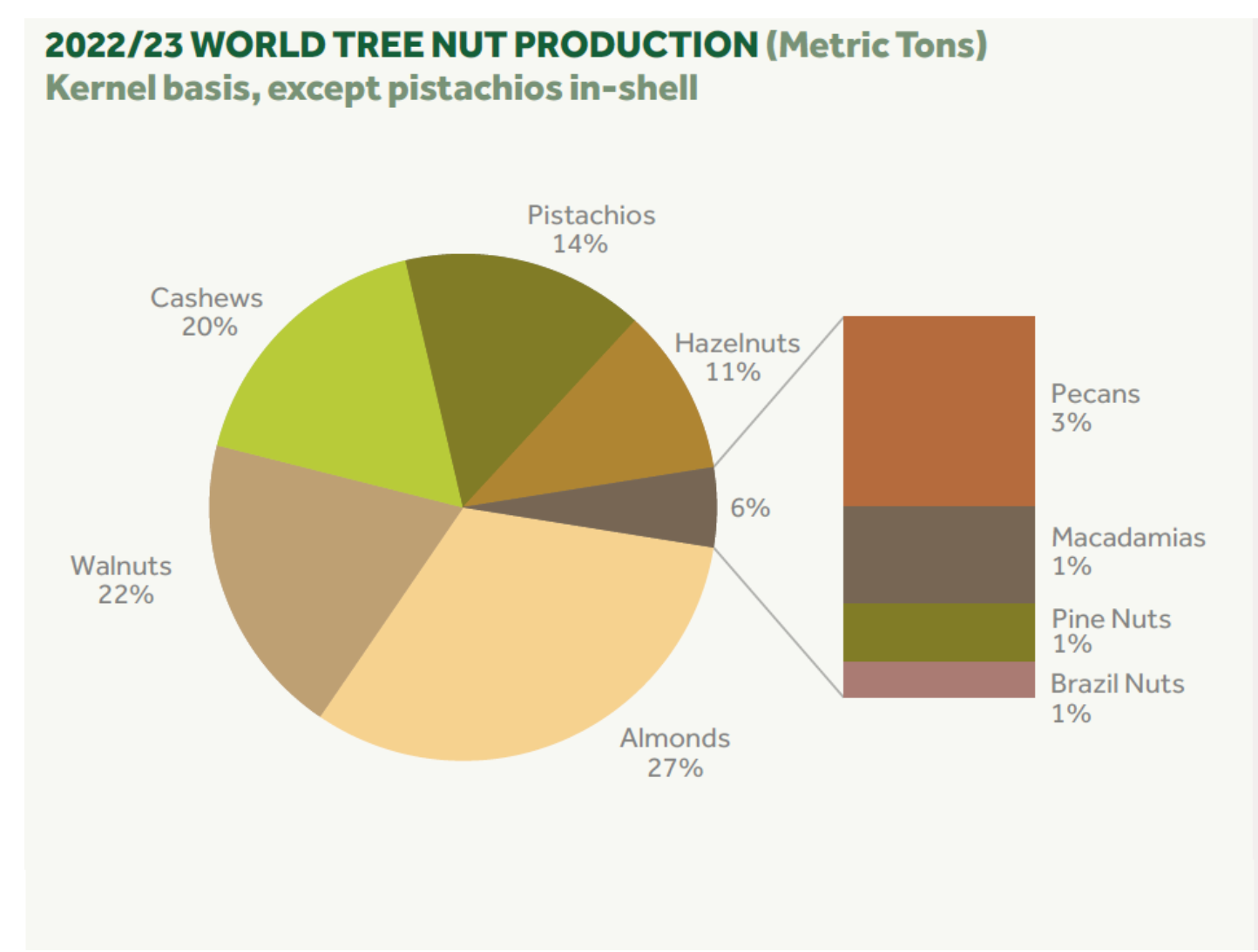 虽然澳洲坚果仅占全球坚果市场中的约1%,然而,自2012年以来,澳洲坚果的产量已增长一倍以上。2022年,全球澳洲坚果市场规模约为12.2亿美元,预计到2029年将达到14.5亿美元。全球主要市场包括北美(30%以上市场份额)、欧洲和亚太地区。