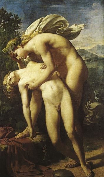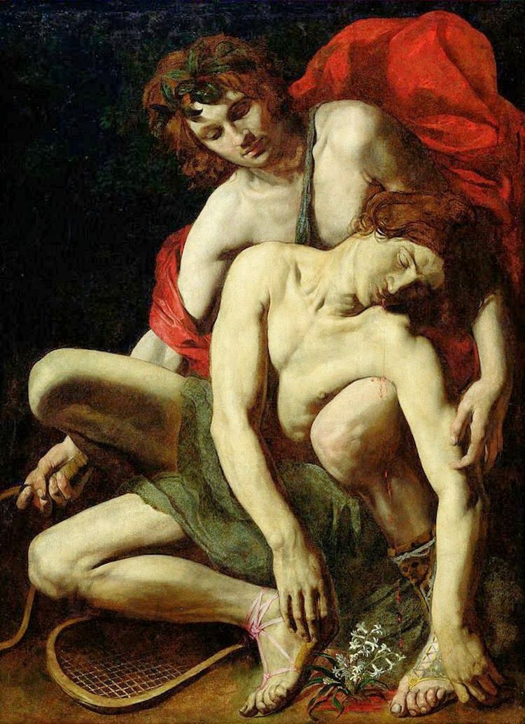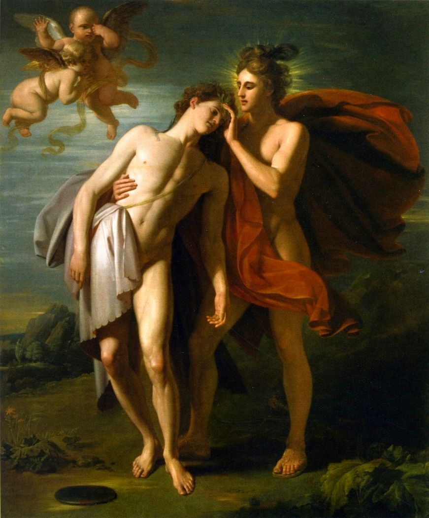 海辛瑟斯是是一个俊美少年,他是希腊的植物神。太阳神阿波罗(Appllo)和西风神泽费奴斯(Zephyrus) 都与他非常要好,然而海辛瑟斯只与阿波罗亲近,他们一起去打鱼狩猎、投掷铁饼(海辛瑟斯投掷铁饼的功力非凡,除阿波罗之外无人能及),西风神甚为妒忌。