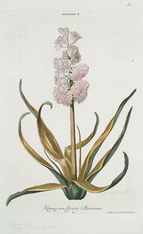 到17世纪末,当郁金香种植在荷兰开始走下坡路后,荷兰的育种家开始将育种的注意力转向风信子。以荷兰Haarlem为中心的周边地区成了风信子种植和新品种选育的重要区域,当地的沙质壤土富含有机质,地下水位距离地表仅0.6-1米高,非常适合风信子生长。风信子的品种改良在荷兰取得了长足的发展,18世纪初的图片资料显示,风信子的每茎花序上最多着花数只有10-15朵花,到了18世纪末花序每茎着花数已上升到了60朵之多。尽管风信子的贸易量从来没有达到超过郁金香的数量,但人工选育出来的每个新花色的风信子品种推向市场都能卖到一个很高的价位。