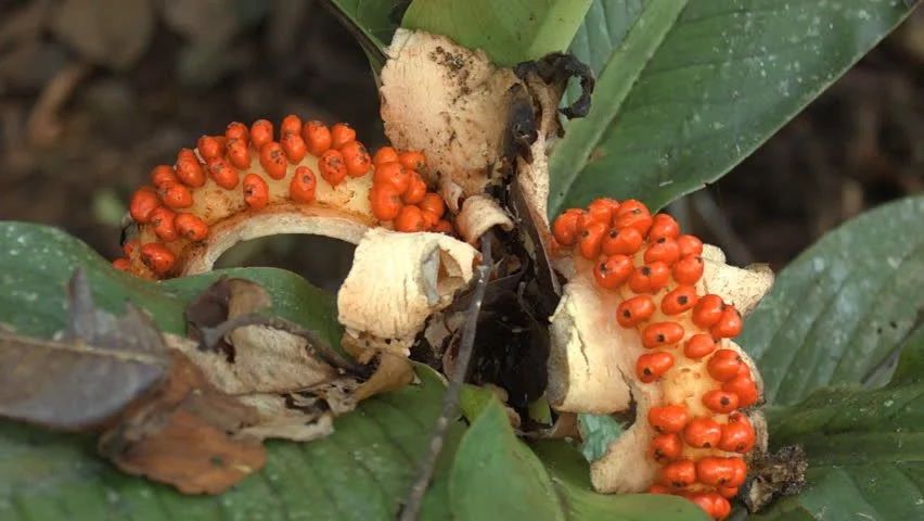 花梗由叶梢中抽出,短于叶柄;花单性,佛焰花序,佛焰苞长圆披针形,狭长,骤尖,下部筒状。花序柄短。肉穗花序:下部雌花序达中部;不育中性花序占全长1/3;浆果橙黄色。