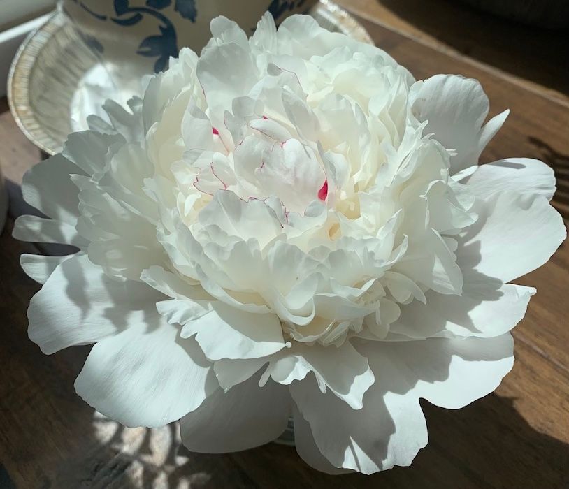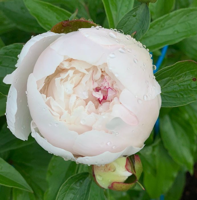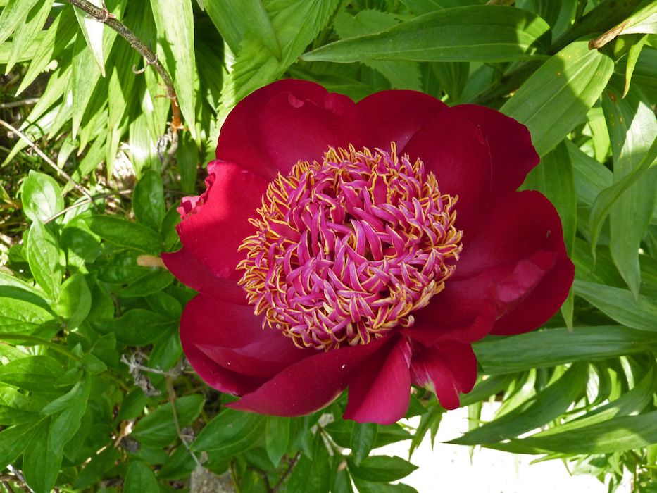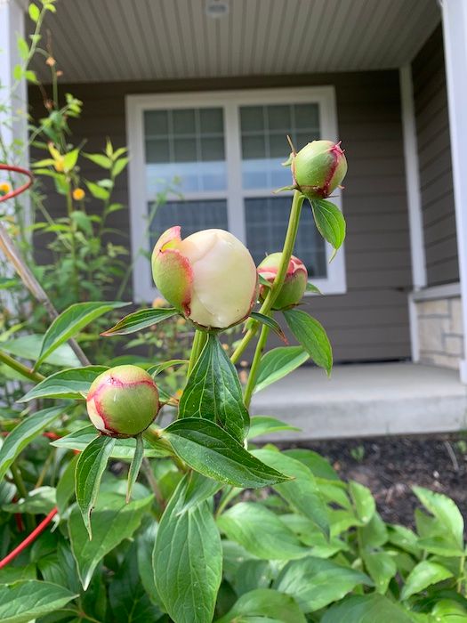 从小生长在南方,一直都不知道芍药和牡丹长什么样子(电视中看到过牡丹,但不算亲眼所见)。好像还愿望“长大后要去洛阳看牡丹”什么的。直到读大学去了北京,因为一门《植物分类学》的课,经常跑植物园,终于在某个春天看到了牡丹(那时候已经知道芍药跟牡丹是“近亲”,长得几乎一样),才算亲眼所见。多年后搬到美国,在房子车库门旁边,开春不久,地上冒出来好多紫红色(后转为绿色)的芽,还好奇是什么。不久后长大,枝叶茂盛,随后长出许多圆圆的花苞,花苞慢慢变大,喷薄欲出的样子,终于在一天开花,竟然就是芍药!那真叫一个惊喜。从那年开始,每年芍药都要开出十几二十朵大花,很是漂亮。