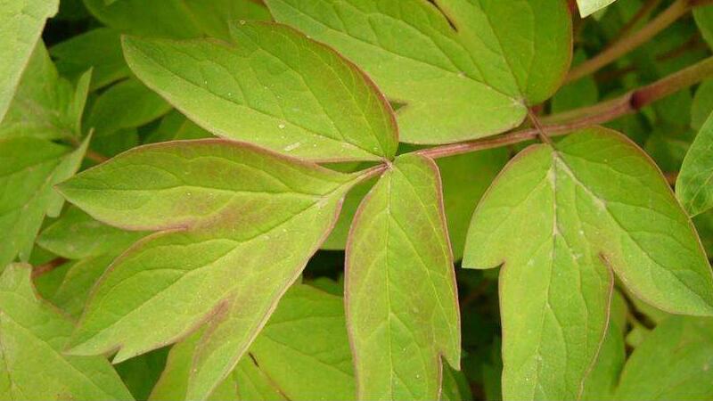 芍药的叶亦具有观赏价值,韩愈的七言绝句《牡丹》提到“浩态狂香昔未逢,红灯烁烁绿盘龙”——绿盘龙,即是对芍药叶子的赞美。