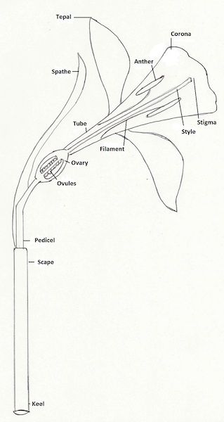 - 喇叭状副冠组(Trumpet)——一葶一花;副冠长度大于等于花瓣长度。